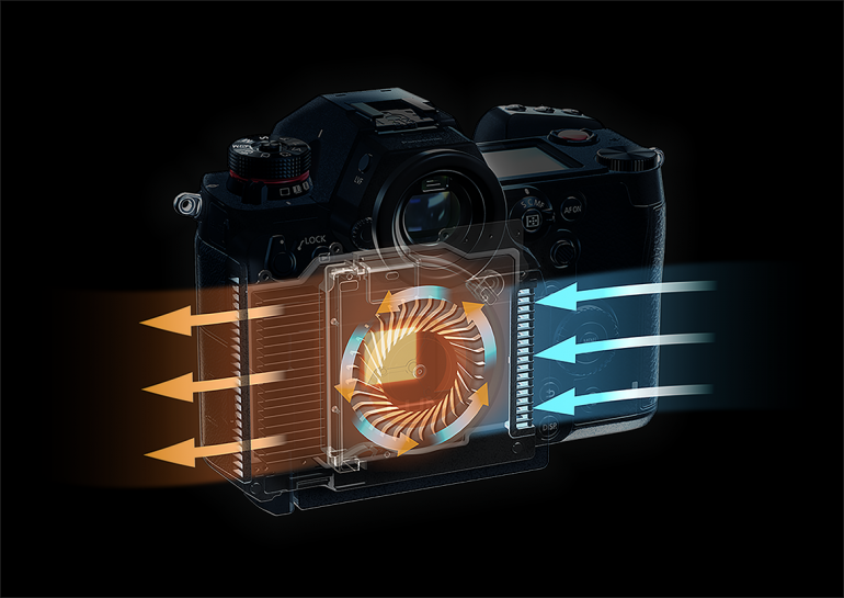 Le Lumix S1H intègre un mode anamorphique 4:3 et la possibilité d’utiliser un profil d’image V-Log doté une plage dynamique équivalente à 14 Stop (quasiment celle de ses caméras ciné) . A noter aussi, et fort logiquement pour un appareil dédié à la vidéo, l’absence de limitation de durée d’enregistrement. Pour ne pas risquer la surchauffe, le boîtier héberge un ventilateur our améliorer la dissipation thermique.
