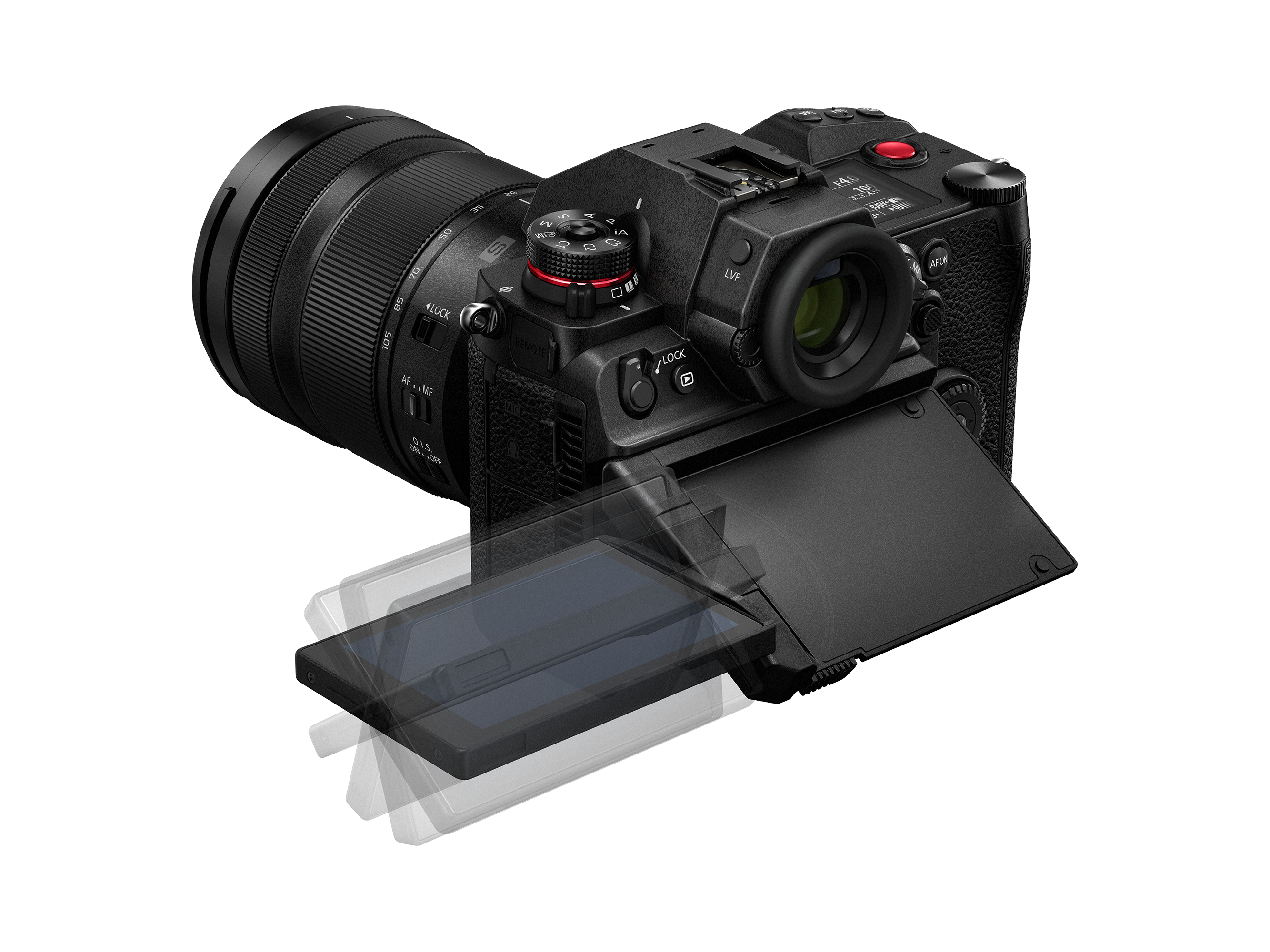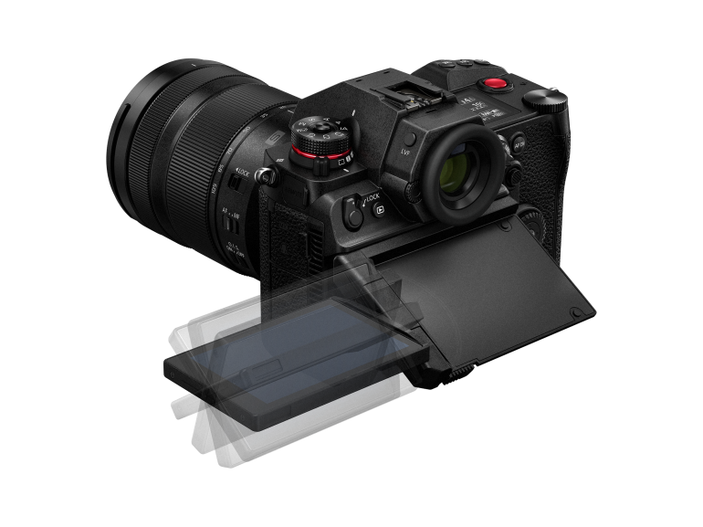 Pour la visée et la visualisation, le Lumix S1H dispose d’un viseur électronique Oled d’une définition de 5 5760 000 points (grossissement de 0,78, 07 ou 0,74 et un taux de rafraichissement de 60 ou 120 ips), et d’un écran LCD de 3,2″ de 2 330 000 points inclinable et orientable.