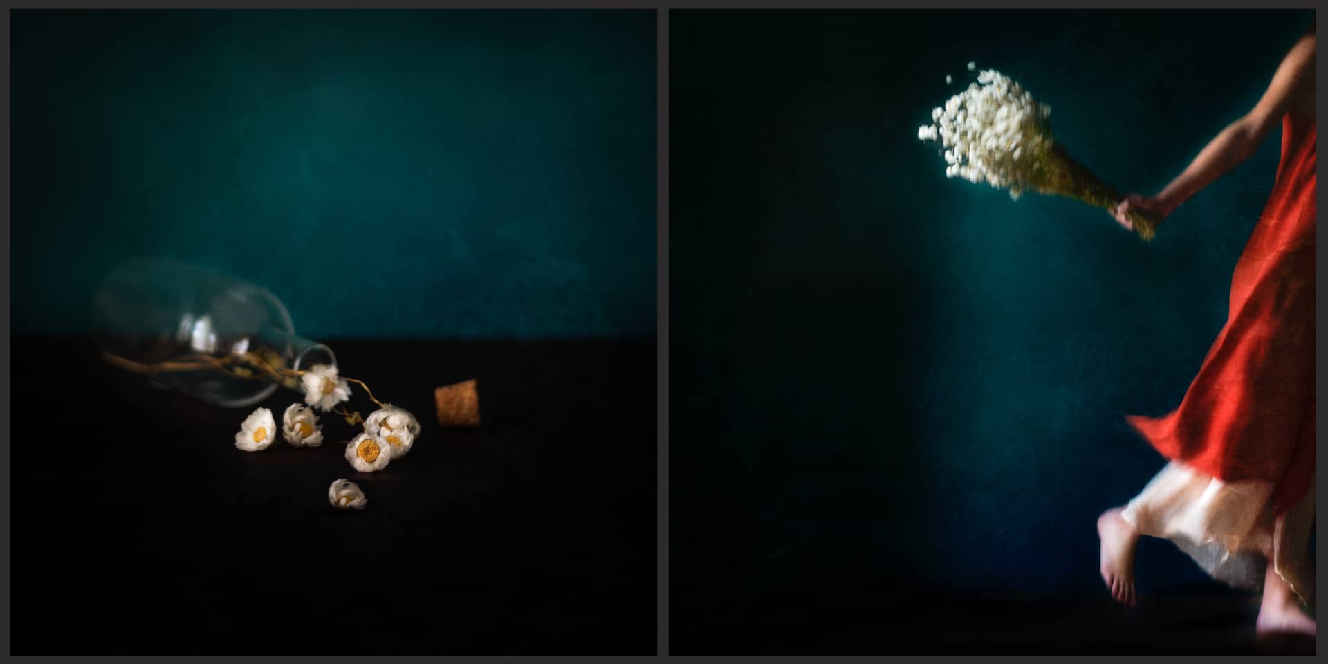 D’abord l’émotion et l’onirisme. Il m’arrive de travailler sur des sujets qui m’engagent sur plusieurs semaines ou plusieurs mois, comme c’est le cas de la photo reportage (EPHAD ou projet de pièce de théâtre par exemple). Je me fonds alors dans le décor et cherche à disparaître pour capter les instants les plus justes, ceux qui me parlent le plus. Que les photos soient posées ou spontanées, nul besoin d’aller à l’autre bout de la terre pour trouver ce que je recherche. J’utilise mon intérieur et la lumière naturelle pour les photos « studio » et ne fais que quelques kilomètres pour les autres.
