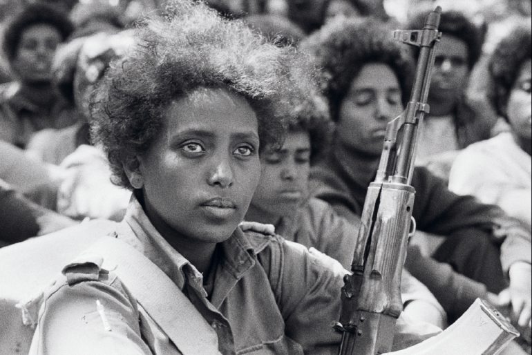 © Patrick Chauvel. Salvador, 1980. Une femme enceinte fuit les tirs avec ses enfants lors des obsèques de l’archevêque Romero -