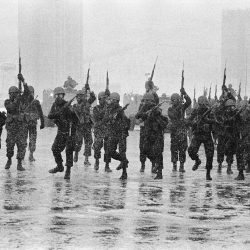 © Patrick Chauvel. Iran, 1979. La garde impériale iranienne, corps d’élite de l’armée du shah d’Iran, lors d’une démonstration de force dans les rues de Téhéran -