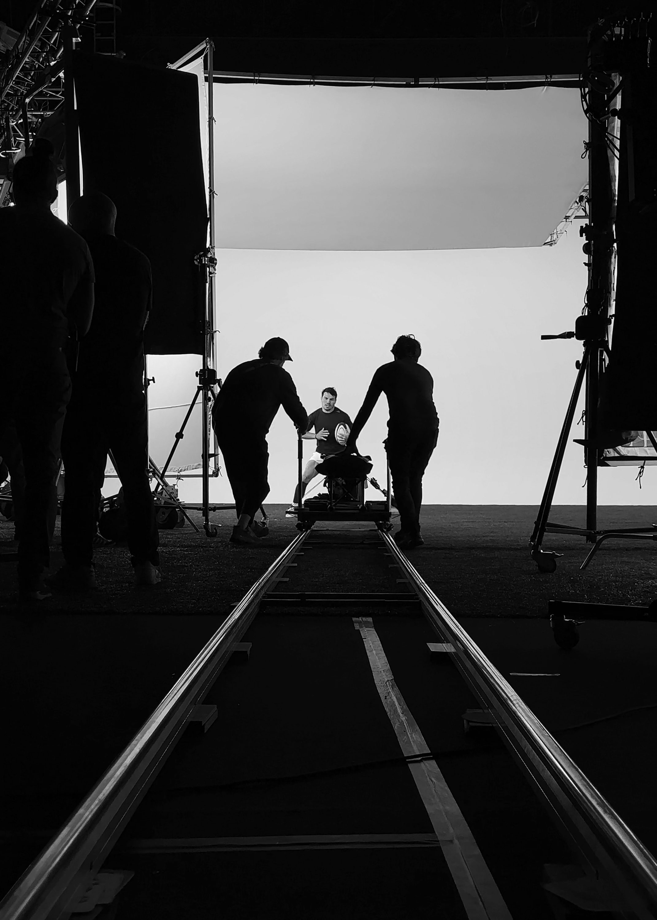 Le cahier des charges était de capturer le rugby d’une manière jamais vue auparavant. L’équipe de Media Arts Lab avait déjà effectué un travail considérable sur le projet avant que je n’arrive. Ils avaient une intention précise pour chaque image. L’idée était de mettre en valeur la qualité distinctive de chaque joueur sur le terrain, que ce soit la vitesse, les changements rapides de direction ou les redoutables percussions. Je voulais rendre les joueurs iconiques et puissants.