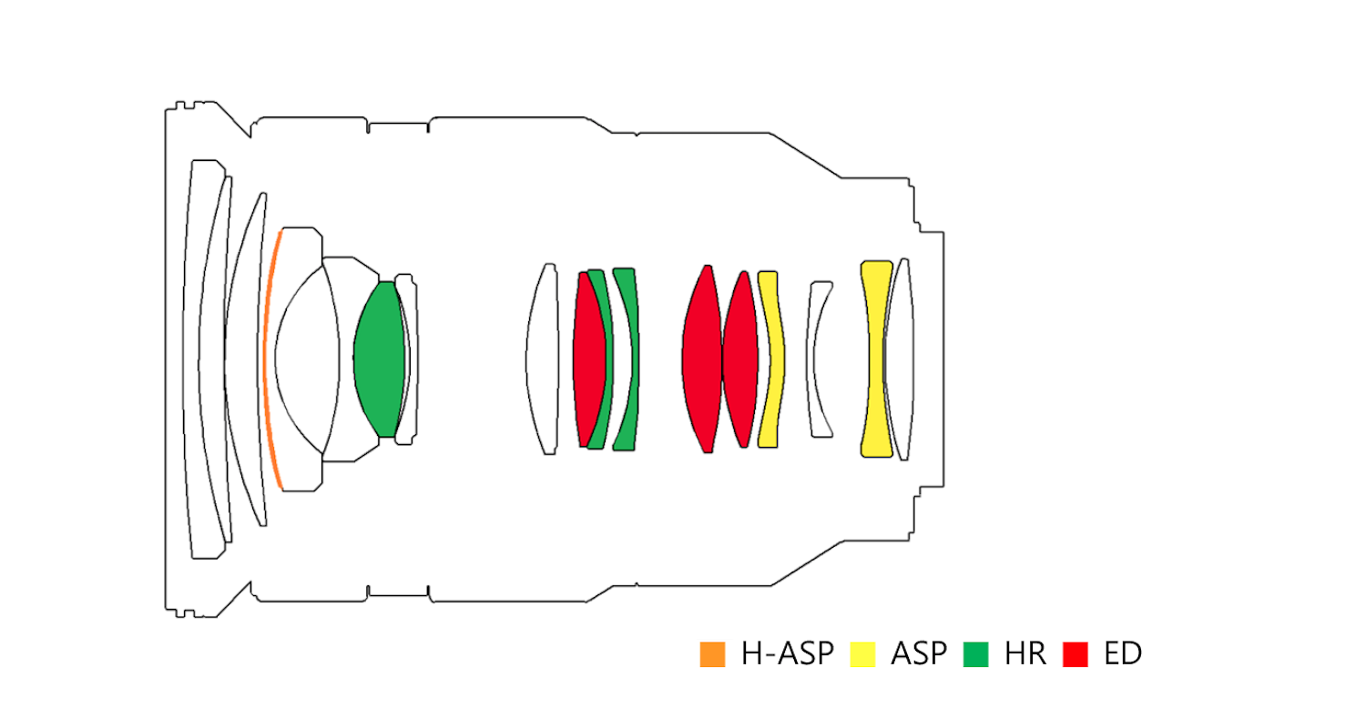 Le Samyang AF 24-70 mm f/2,8 FE s’appuie sur une construction optique à 17 éléments organisés en 14 groupes. On retrouve un verre H-ASP, deux ASP, trois HR et 3 ED. La plage d’ouverture s’étalant de f/2,8 à f/22 est gérée par un diaphragme à 9 lamelles.