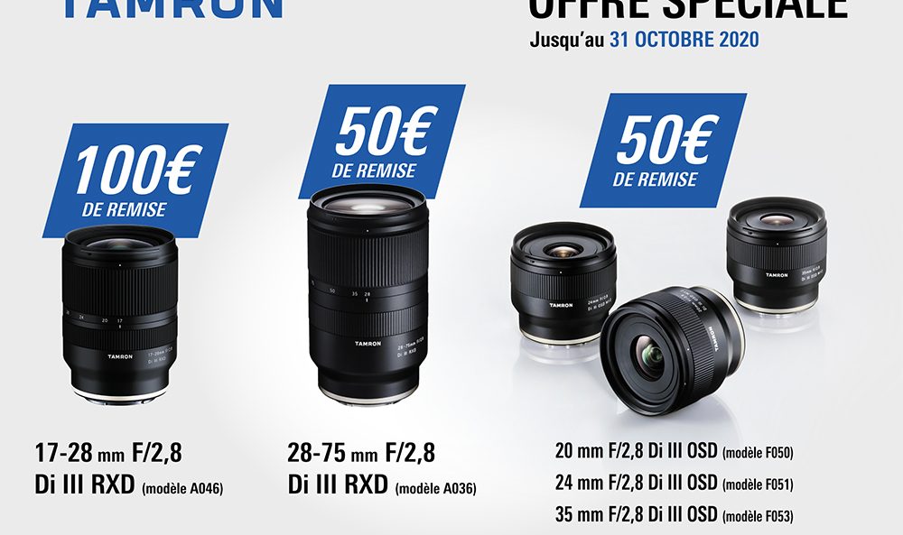 - 100€ pour l’achat d’un Tamron 17-28 mm F/2,8 Di III RXD