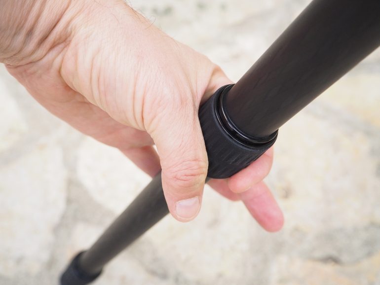 Le Leofoto Urban SC-284CT est léger et se transporte facilement. On trouve une poignée en caoutchouc fixée sur l’une des jambes pour faciliter son transport. Dommage qu’il n’y ait pas ici un cran d’arrêt pour la position fermée car la jambe que l’on porte a parfois tendance à trop s’écarter.