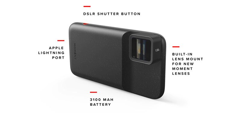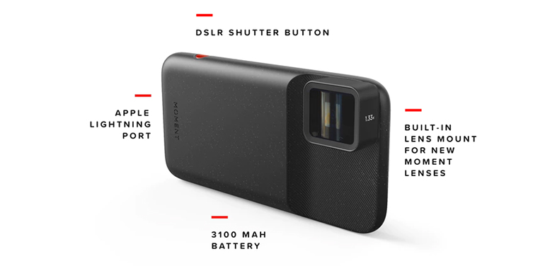 En plus d’être parfaitement adaptée à l’optique anamorphique (et aux autres optiques proposées par Moment), cette coque plutôt esthétique contient aussi une batterie 3 100 mAh, pour apporter plus d’autonomie. Elle est aussi équipée d’un bouton de déclenchement, est compatible avec la recharge sans fil “QI”, et est livrée avec une sangle de poignet.