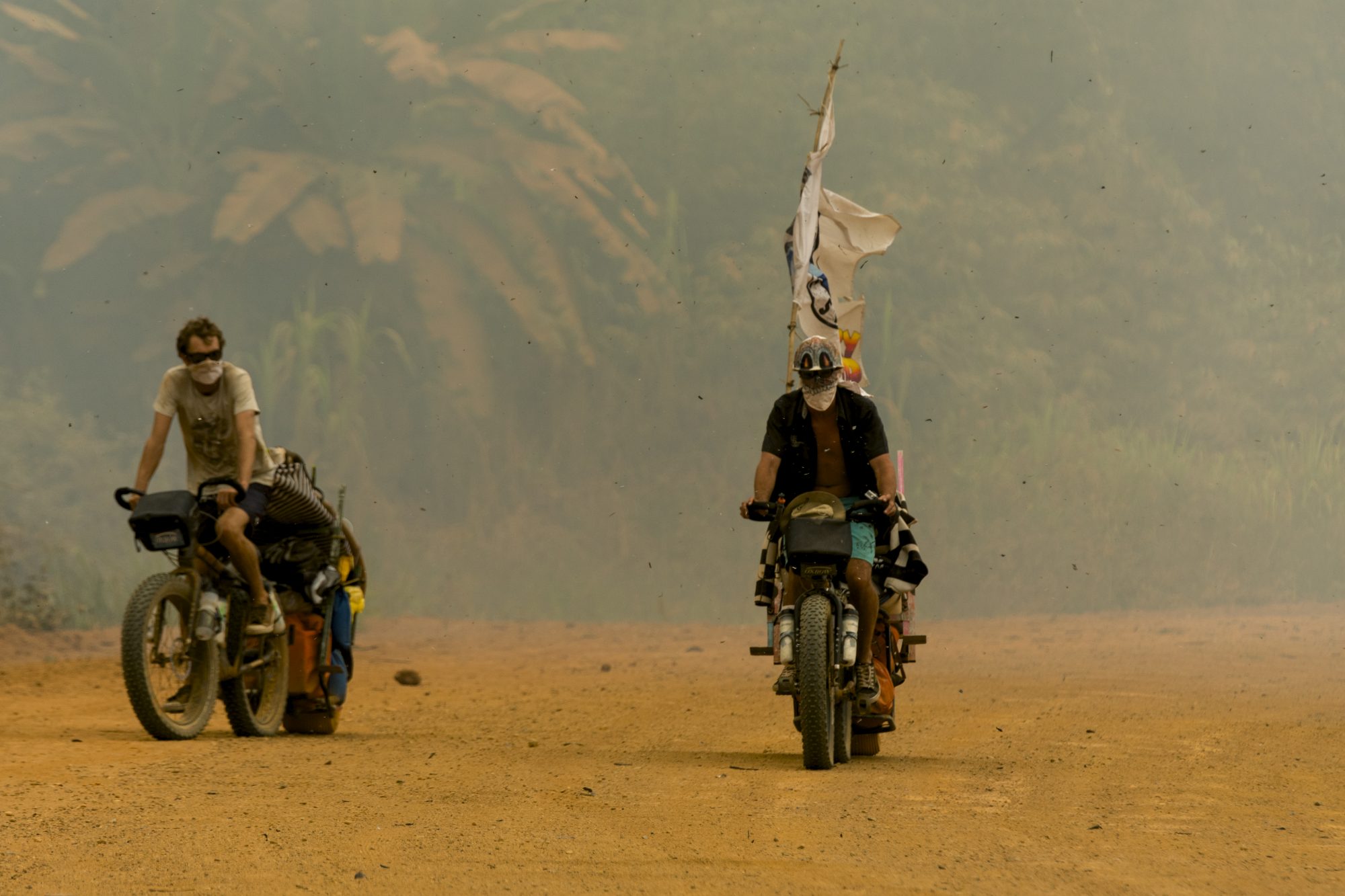 Nous souhaitions trouver des vagues qui n’ont jamais été surfées. Nous avons repéré les réserves naturelles du Gabon, un lieu inaccessible et ce, quelque soit le moyen de locomotion traditonel. Pendant trois mois, nous avons longé les côtes africaines en « fat bike » (vélos aux grosses roues permettant de pédaler dans le sable) à la recherche de belles vagues.