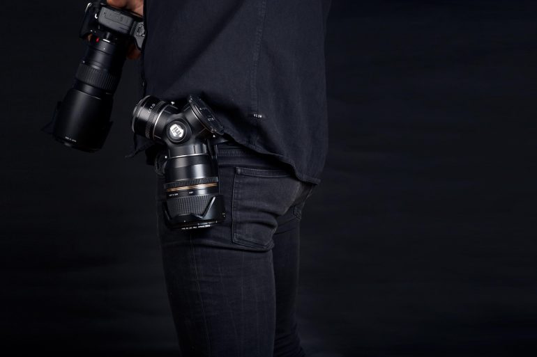 Le système est compatible avec les montures Canon EF, Nikon F et Sony E-Mount. Trilensse compose d’un berceau fait de métal, fibre et de nylon capable de supporter jusqu’à 100 kg qui vient se glisser dans une ceinture. C’est lui qui accueille le corps du système TriLens. Ce dernier avec son axe articulé permet à l’ensemble des trois objectifs de trouver leur point d’équilibre lors des déplacements. Et lorsque l’un des emplacement est libre, il se place automatiquement en position haute pour être facile d’accès.