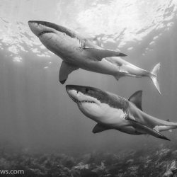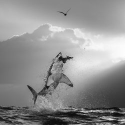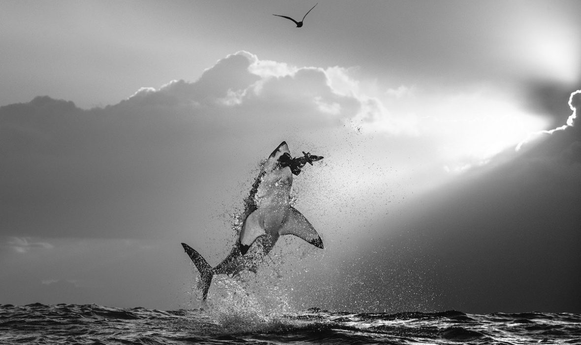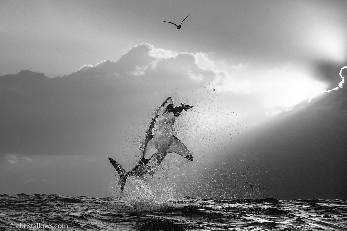 Chris Fallows a pris la photo de sa vie en immortalisant un requin blanc à la chasse, suspendu de plusieurs mètres au-dessus de la surface de l’eau. Une photo unique et une véritable prouesse technique qui éveille les conscience quant à l’enjeu de préservation de cette espèce. (Photo d’ouverture : © Chris Fallows)