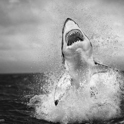 Le photographe animalier Chris Fallows a récemment pris le « cliché de sa vie » grâce à un requin blanc. Après des années de recherches et de tentatives, il a enfin pu réaliser cette photographie à couper le souffle d’un immense requin à la chasse, émergeant de plusieurs mètres au-dessus de la surface de l’eau. Un geste athlétique parfait et rapide que le photographe a pu saisir en se positionnant lui-même à hauteur de l’immense animal, sur un radeau gonflable. Grâce à l’intérêt scientifique que cette photographie est en train de susciter, le photographe espère pouvoir sensibiliser encore plus à la protection de ces géants de la mer qui tant le passionnent.