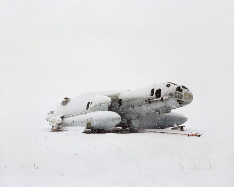 Voyage rythmé par le son du transsibérien et par les airs de Borodine, l’exposition transporte le spectateur à travers des ambiances mutantes et toutes aussi fantasmées qu’inconnues. Le Baïkal Intérieur de Sylvie Bonnot témoigne d’une approche photographique méditative, où la contemplation est souveraine. Le documentaire laisse la place à la fable, l’imagination se nourrissant de ces images indéfinies, sans frontières. Danila Tkachenko quant à lui, avec Territoires de l’échappée, nous restitue les restes de l’arsenal guerrier et gelé de la vieille URSS et de la moderne Russie en route, ponctué par des rencontres d’un futur improbable avec ces rebelles hippies oubliés d’un passé survivant.