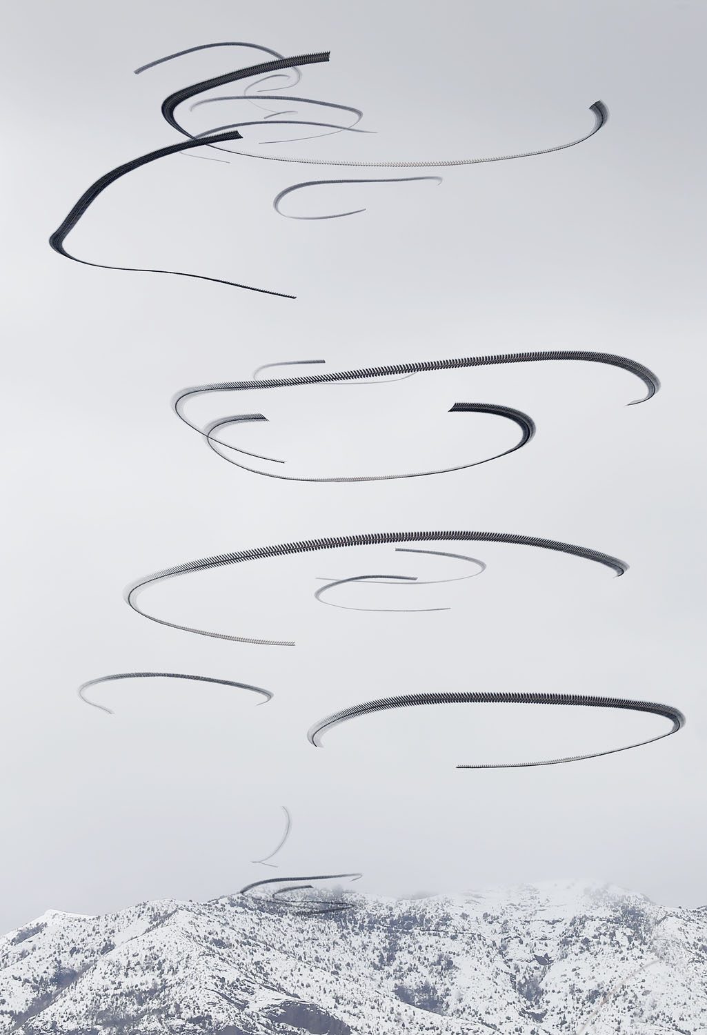 La série naît donc d’un désir de photographier l’impossible, de dire l’indicible, d’aller au-delà des perceptions humaines en représentant ce que l’œil nu ne voit pas. L’idée est donc de capturer dans un seul cadre le mouvement d’oiseaux et ensuite, le représenter par des formes abstraites qui stimulent l’imagination.