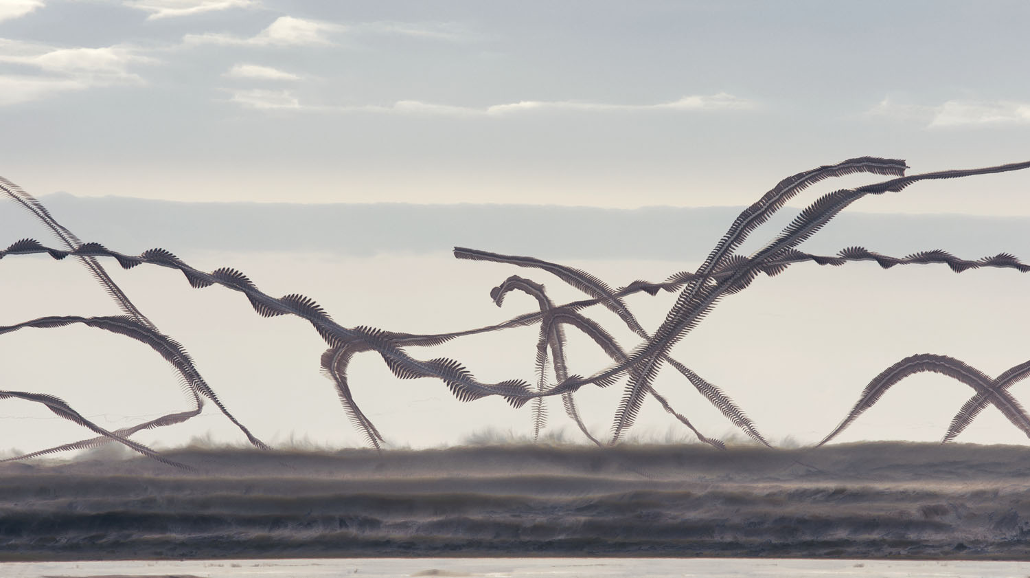 La science, la technologie et la créativité se croisent dans Ornitographies pour créer des images puissantes, montrant la sensualité et la beauté du vol des oiseaux mais qui en même temps permettent de reconstruire une cartographie précise des mouvements propres à chaque espèce. Présent, passé et futur se côtoient au sein de chaque cliché.