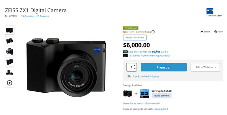 Alors qu’on finissait par se demander s’il allait être disponible un jour, le Zeiss ZX1, concept d’appareil photo hors normes, semble prêt à la commercialisation. Il est apparu il y a quelques jours sur le listing du site B&H, à 6 000 $.