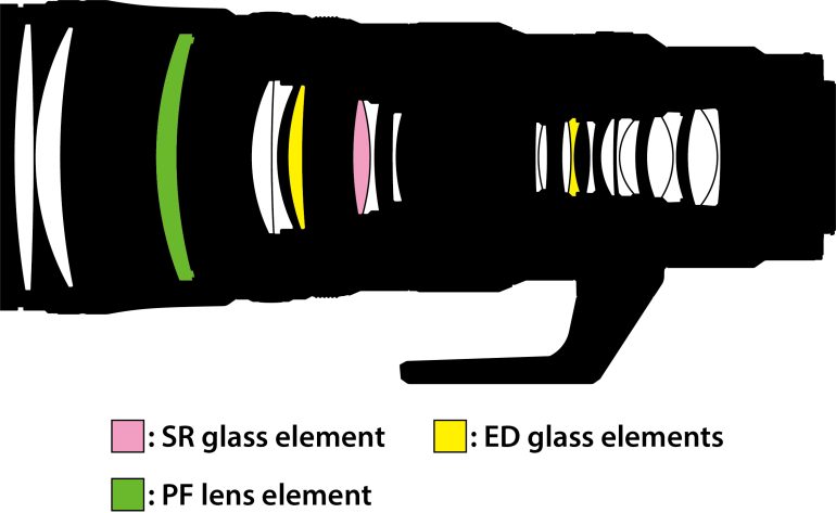 La conception du Nikkor Z 600cmm f/6,3 VR S s’appuie sur une formule optique à 21 éléments répartis en 14 groupes, incluant deux lentilles à verre ED à dispersion extra-faible, une lentille en verre SR, et donc une lentille de Fresnel. Le traitement nanocristal (pour atténuer notamment les reflets parasites) , ainsi que celui au fluor de la lentille avant (pour renforcer sa résistance) sont au rendez-vous.