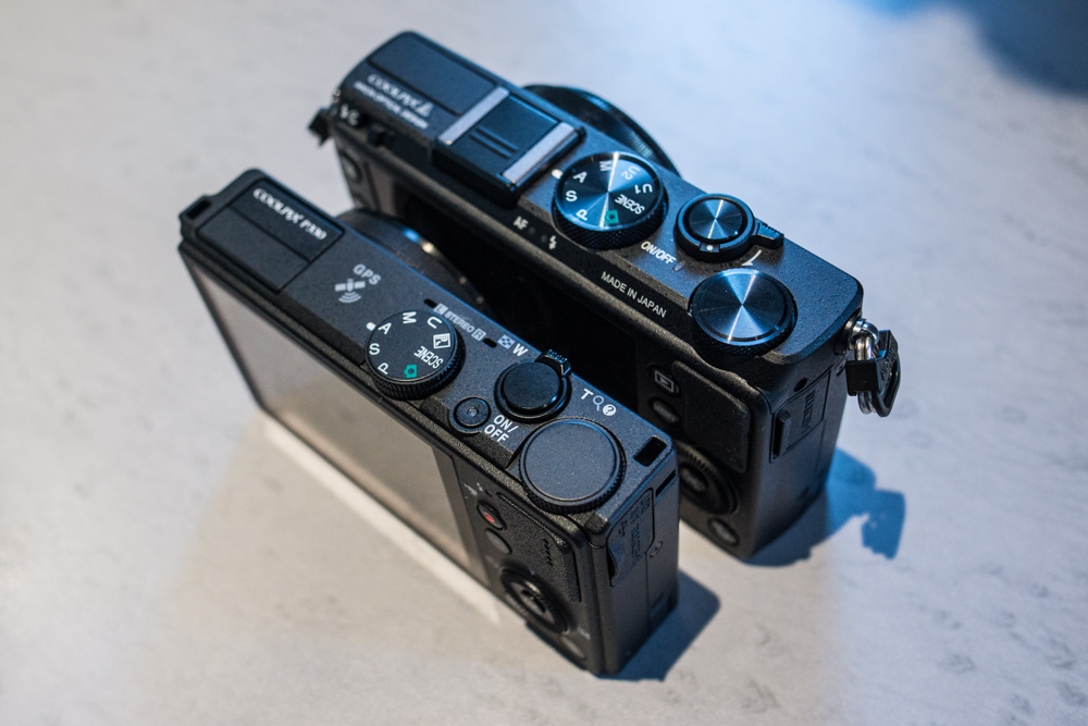 Comme vous le voyez, le Sony (à gauche) reste un exploit du genre : il réussit à se montrer aussi, voire plus compact que le P330, alors qu’il embarque un capteur 1 pouce !