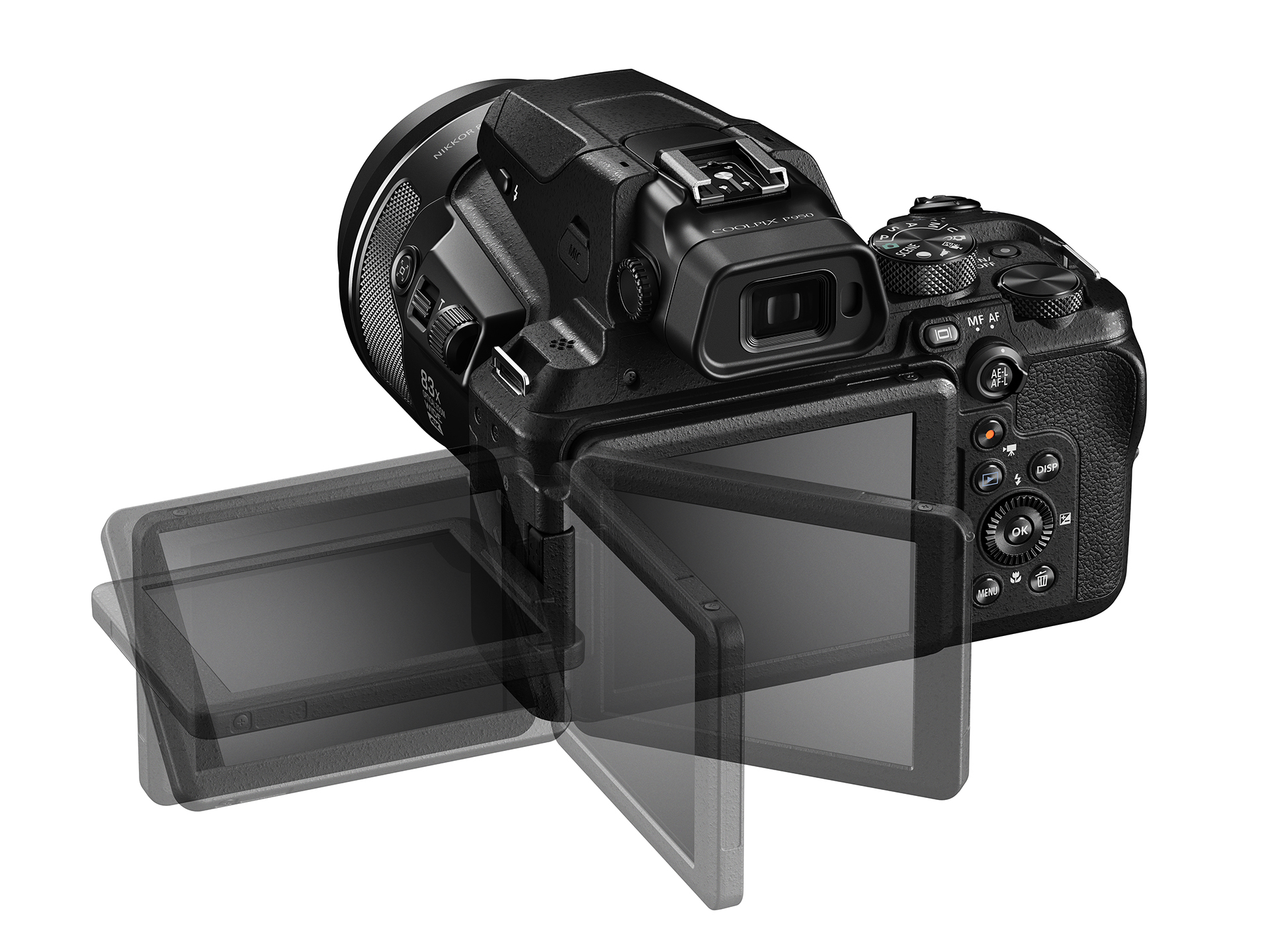 Au niveau de l’ergonomie le Nikon P950 reçoit un viseur électronique doté d’une dalle OLED d’environ 2 359 000 pixels et surtout d’un moniteur ACL TFT orientable d’environ 921 000 pixels optimisé pour une visibilité sous tous les angles, avec traitement anti-reflet.