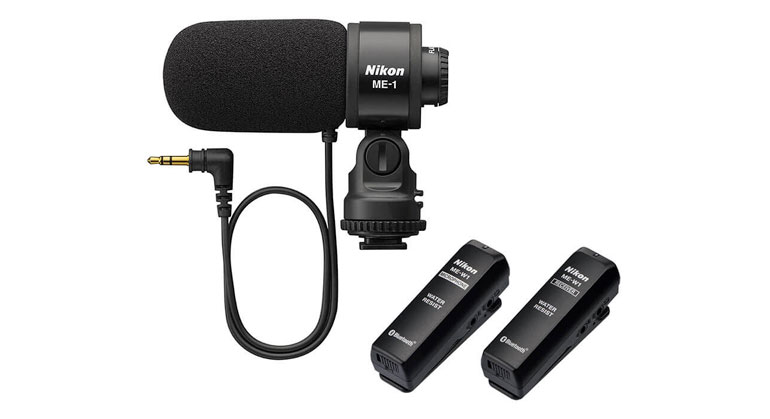 Deux types de micros font partie du kit proposé par Nikon. Le premier est le Nikon ME-1, un micro directionnel aux dimensions contenues. Il se fixe sur la griffe porte-accessoires du D850.