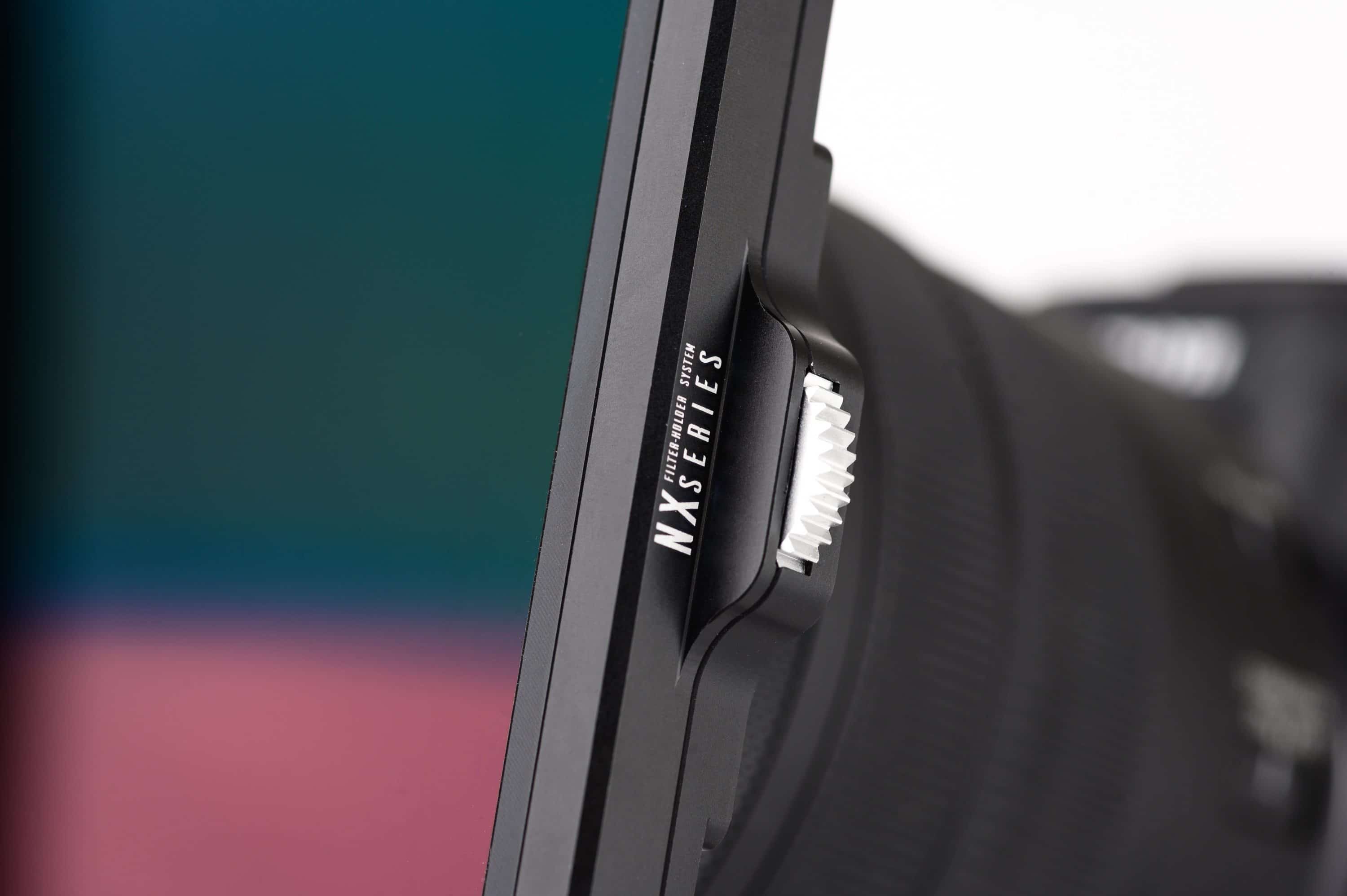 Le porte-filtres NX-Séries dispose de billes pression guidant les cadres dans leur emplacement pour des opérations fluides et précises. La marque souligne que les cadres métalliques ont permis d’augmenter l’angle de champ du porte-filtres et par conséquent de limiter les risques de vignettage même avec des focales type 16-35mm.