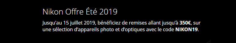 Sur le site Miss Numérique, on trouve aussi cette offre avec le code Nikon suivi du chiffre représentant la réduction (ex : NIKON350), mais pas sur un page spéciale.