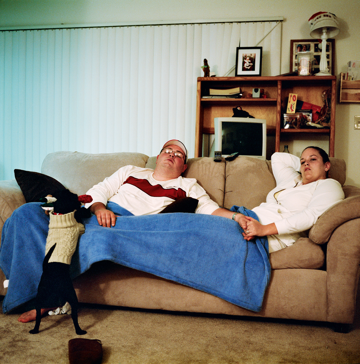 Culmann immortalise ces instants de perdition, ces temps–morts de l’existence où la conscience s’endort devant le flot d’images cathodiques. En Inde, aux Etats-Unis, au Maroc, en France, des couples, des enfants, des jeunes, des vieux regardent en vrac les infos, le foot, les Simpsons, des VHS, des feuilletons… Des regards tendus et passionnés, des visages endormis et passifs, des corps tordus et immobiles : les photos pourraient parfois prêter à sourire –surtout quand on découvre le contre-champ, ce bête écran qui trône parmi les bibelots.