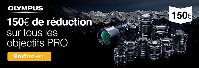 Cette offre vous permet d’obtenir 150 € de réduction sur les optiques Zuiko Pro, et ce jusqu’au 31 mars 2020.