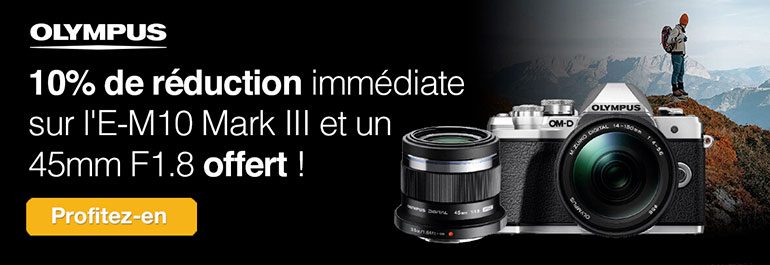 10% de réduction sur l’E-M10 Mark III et un 45 mm f/1,8 offert