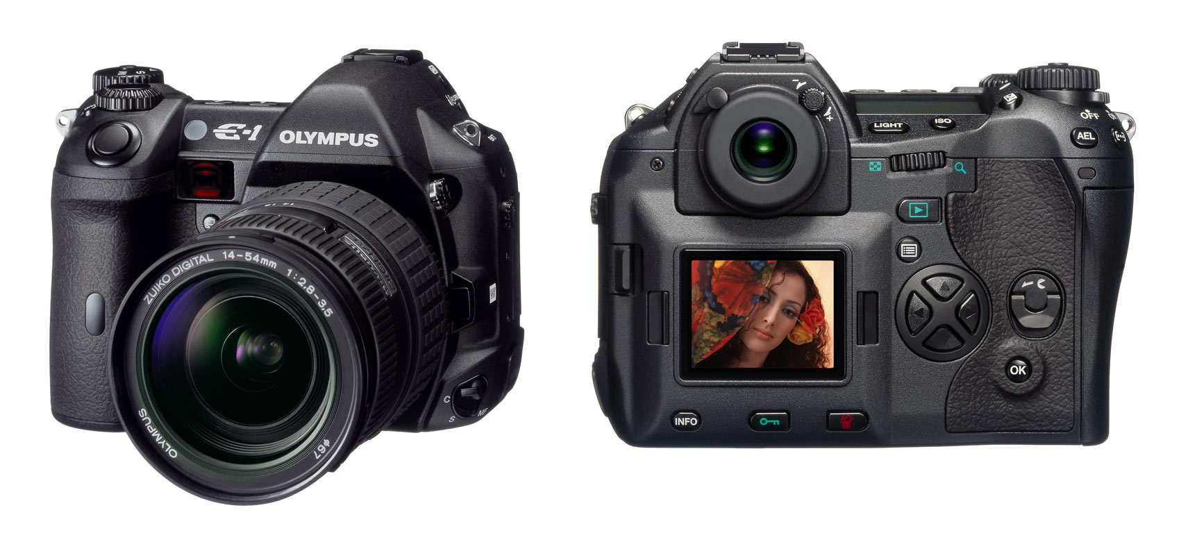 En 2003, Olympus annonce son retour aux reflex à optiques interchangeables avec le E-1. Toujours avec le souci de réduire l’encombrement, Olympus propose avec son E-1, un nouveau standard de baïonnette appelé 4/3, crée avec Kodak. Il est ouvert aux autres fabricants et adopte le ratio 4/3, commun aux appareils numériques compacts et aux moniteurs informatiques et TV. En 2006, Leica et Panasonic adoptent le standard 4/3 à leur tour, élargissant quelque peu la compatibilité du système et le parc optique disponible. En 2007, Olympus revient vers des formes de reflex plus conventionnelles avec les E-410 et E-510 équipés de capteurs Panasonic de 10 MP. En 2008, Olympus présente un nouveau format de baïonnette micro 4/3 le Pen E-P1 qui permet de s’affranchir du miroir des reflex et de diminuer encore l’encombrement. Le succès, conforté par Panasonic et sa série G va être au rendez-vous et dix ans plus tard ils seront suivis par Canon et Nikon.