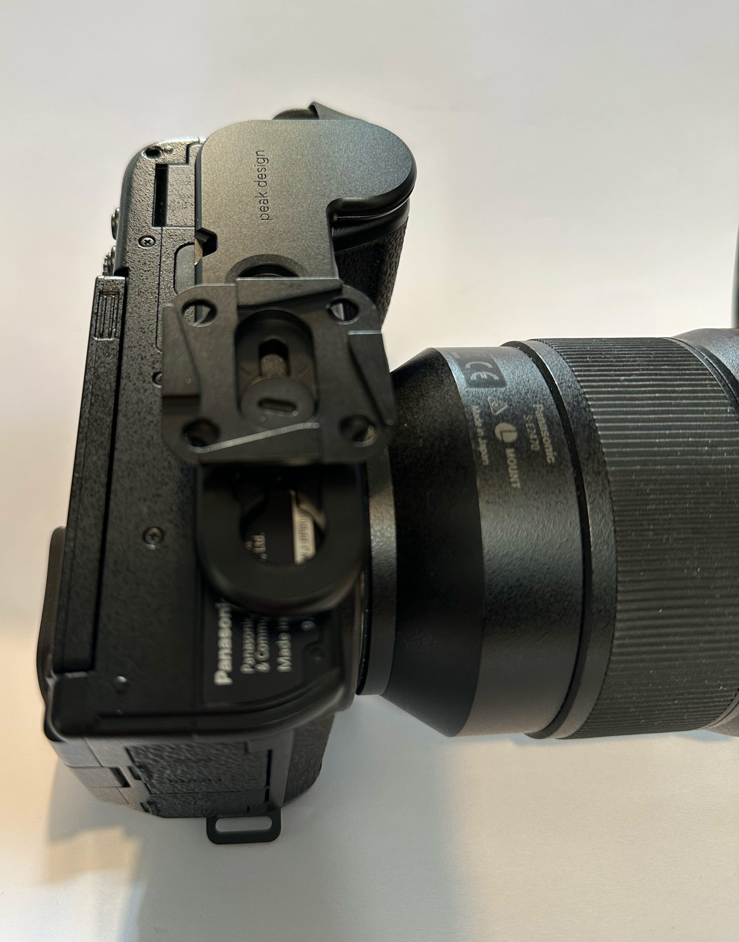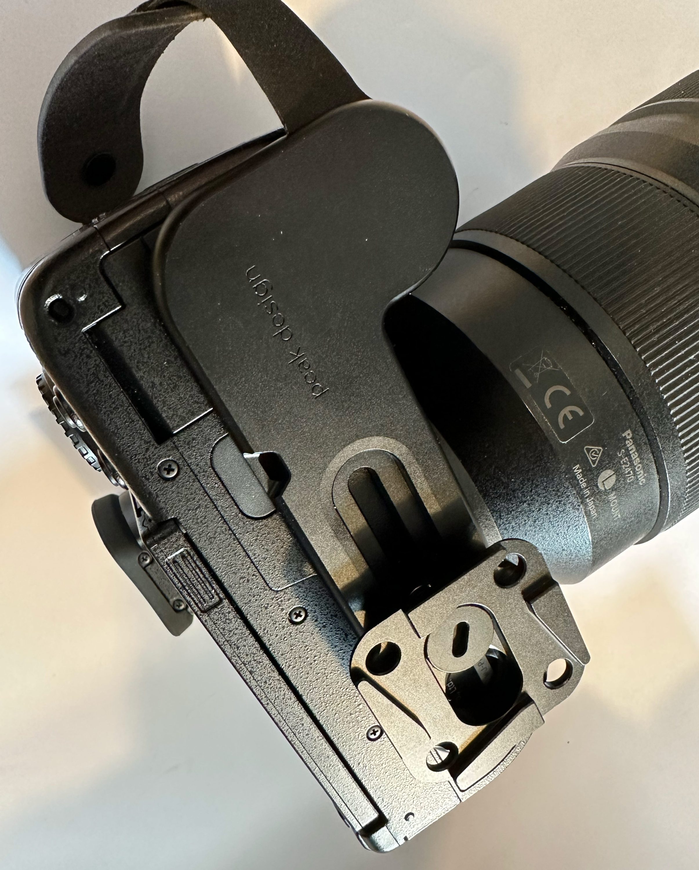 La mise en place et l’ajustement se fait très rapidement, quelques minutes à peine. Comme déjà dit plus haut, nous avons testé le Peak Design Micro Clutch avec un Panasonic Lumix S5, un appareil photo hybride plein format les plus compact du marché. Une fois fixé, il apporte indéniablement une sécurité et stabilité de tenue supplémentaire, malgré le fait que notre boîtier dispose déjà d’une poignée. Nous serions curieux de tester la version pour les plus petit appareils avec sa plaque de fixation en I, notamment sur les Fujifilm X-T30 ou X-S20.