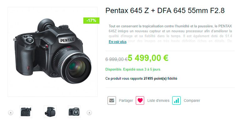 La seconde promotion concerne le boîtier moyen format Pentax 645Z, qui bénéficie jusqu’au 31 décembre 2018 d’une remise immédiate de 1000 €, et même 1500 € en kit avec l’objectif 55 mm f/2,8 AL (IF) SDM AW.