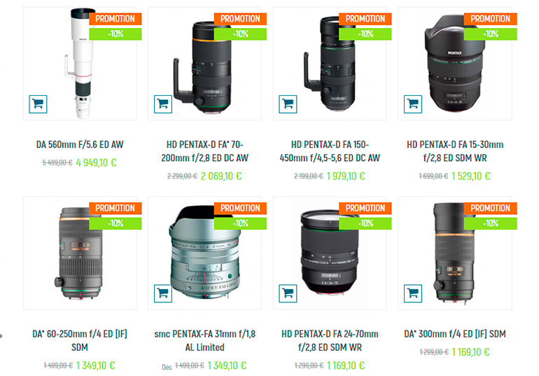 Pentax en profite pour rappeler deux promotions supplémentaires disponibles en ce moment. La première concerne une réduction de 10% sur les optiques Pentax.