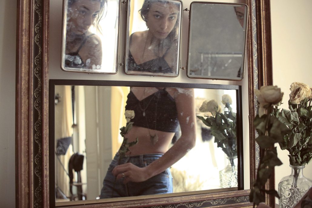 Très belle composition en jeu de miroir, dont la complexité me rappelle certains travaux de mode de Saul Leiter