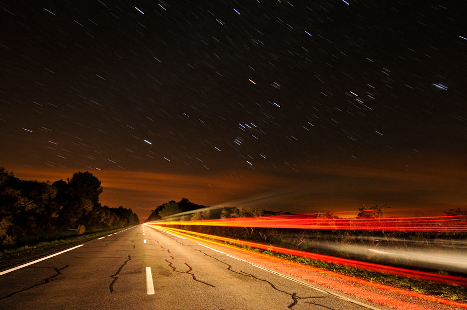 En fait, le plus compliqué, c’était de faire comprendre aux gens que je n’étais pas en difficulté, et qu’il fallait absolument qu’ils ne s’arrêtent pas sur le bord de la route et qu’ils la continuent bien droit et pas trop lentement (sinon les hautes lumières des feux « crament » la photo).