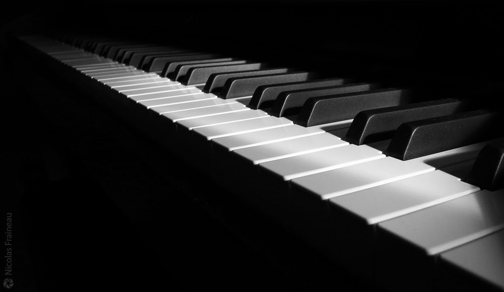 Une jolie lumière rasante sur le clavier et je ne peux pas m’empêcher de sortir l’appareil pour immortaliser ces quelques notes noires et blanches…
