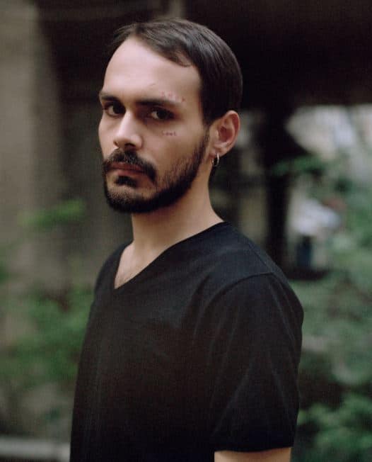 Le photographe, passionné par les cultures underground et par les questions identitaires, a découvert la situation géorgienne en se renseignant sur les émeutes de 2013 et 2018. Les vidéos de ces manifestations montrent des descentes de police attaquant des clubs LGBTQ+ sous couvert de lutte contre le trafic de drogue. Ces actes ont été suivis de violentes actions des nationalistes du pays contre les personnes queer. Les jeunes dont Piet tire le portrait racontent leurs histoires : Mariam, dans la photo ci-dessous, pose avec l’habit de prière de son père, des vieux bâtiments sur le fond, le regard stoïque et les cheveux courageusement courts. La photo est une puissante claque à la culture religieuse oppressante.