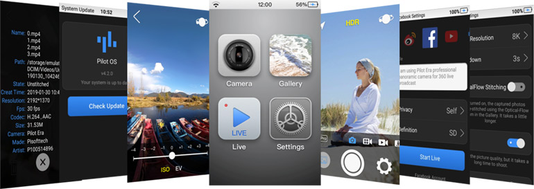 La Pilot Era est équipée de 4 modules photo Sony CMOS 1/2.3 pouces de 12 mégapixels, équipés d’optiques fisheye asphériques ouvrant à f/2,2. Elle est aussi équipée de 4 microphones permettant un son panoramique.