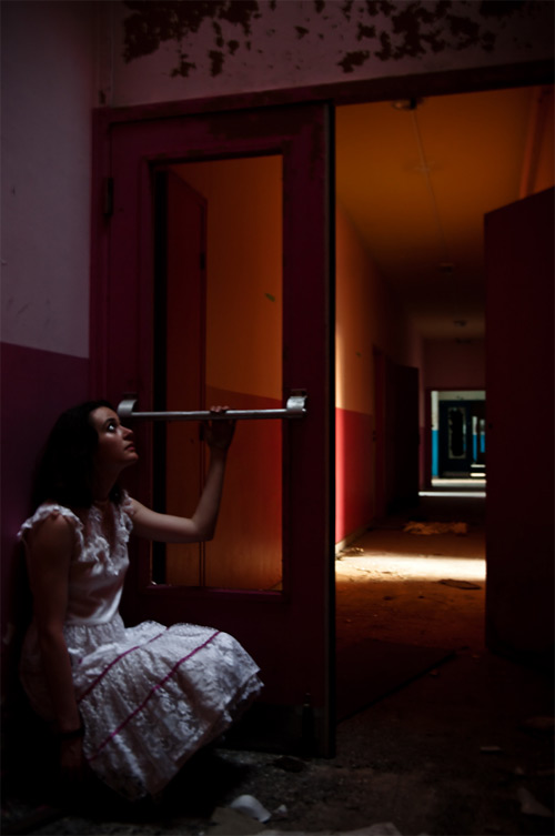 J’ai demandé à Charlotte de se mettre juste en dessous d’un petit puit de lumière et on a voulu jouer sur l’aspect poupée abandonnée. En fait j’ai plus essayé de rendre un sentiment, une certaine forme d’abandon ou d’innocence perdue.