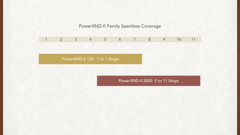 Le premier filtre, le PowerXND-II 128, couvre de 1 à 5 stops, alors que le second qui couvre de 5 à 11 stops se nomme PowerXND-II 2000.