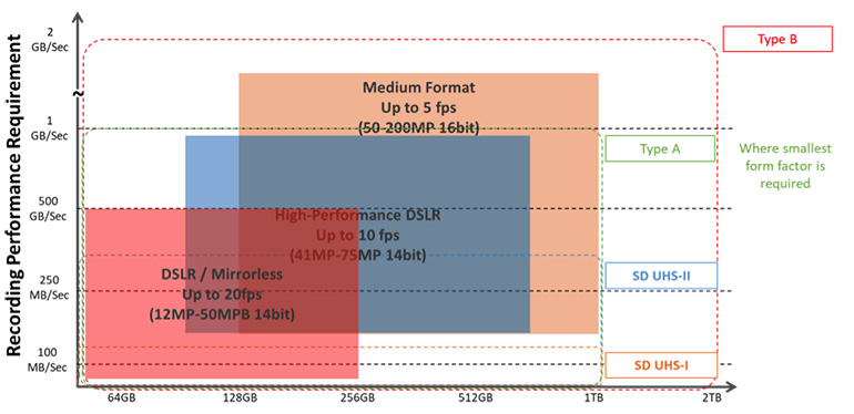 Avec 1 To de stockage, une vitesse de 1,4 Go par seconde en lecture, et 1 Go par seconde en écriture, la nouvelle carte a de quoi impressionner. En écriture, elle est certifiée pour un fonctionnement en continu à un minimum de 400 Mo par seconde.