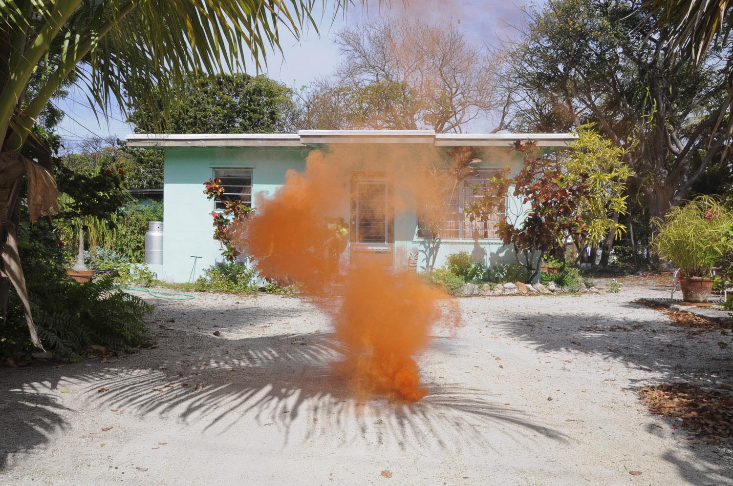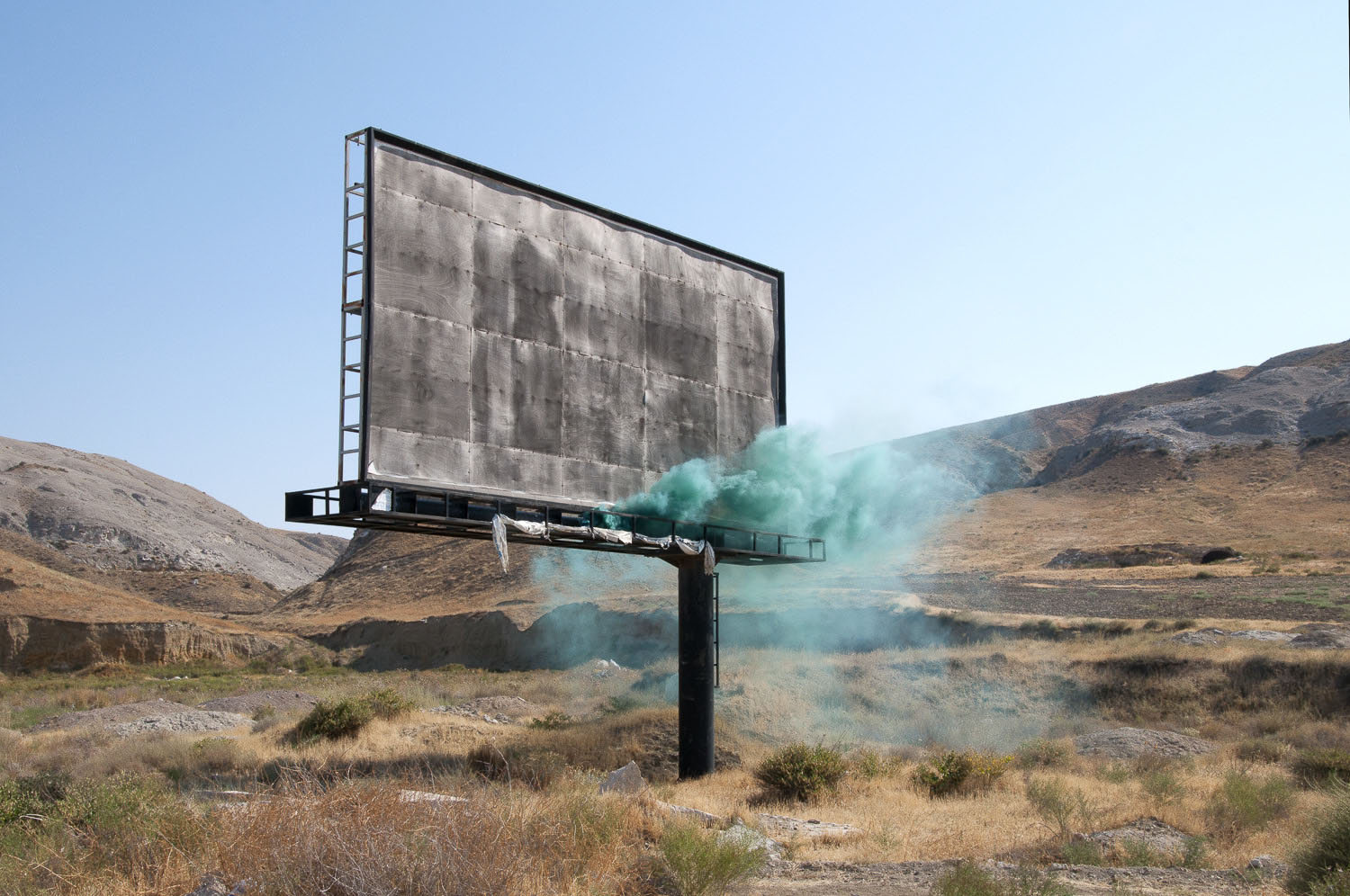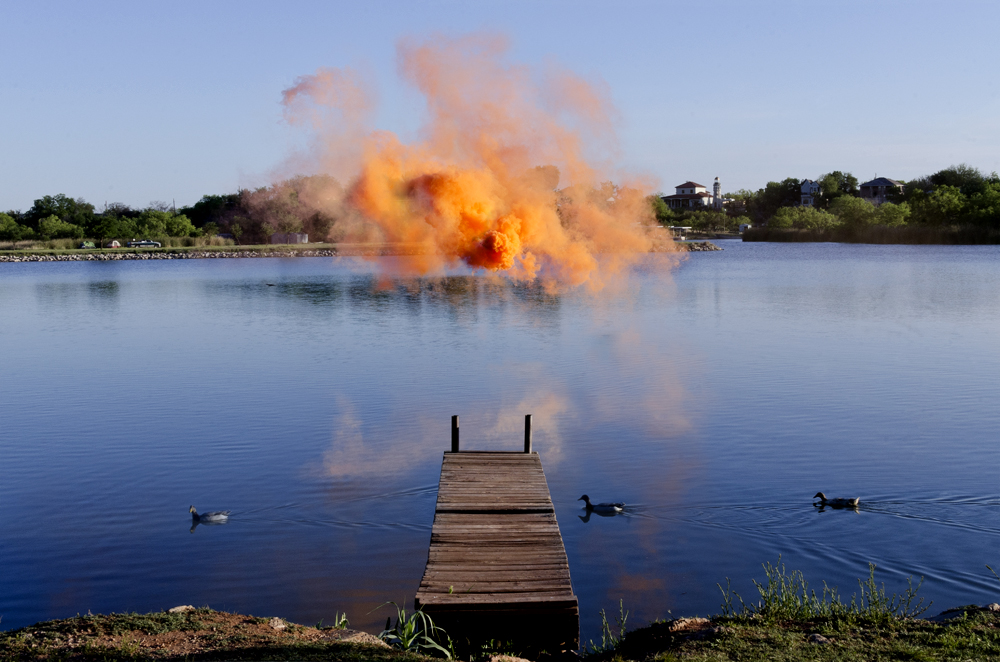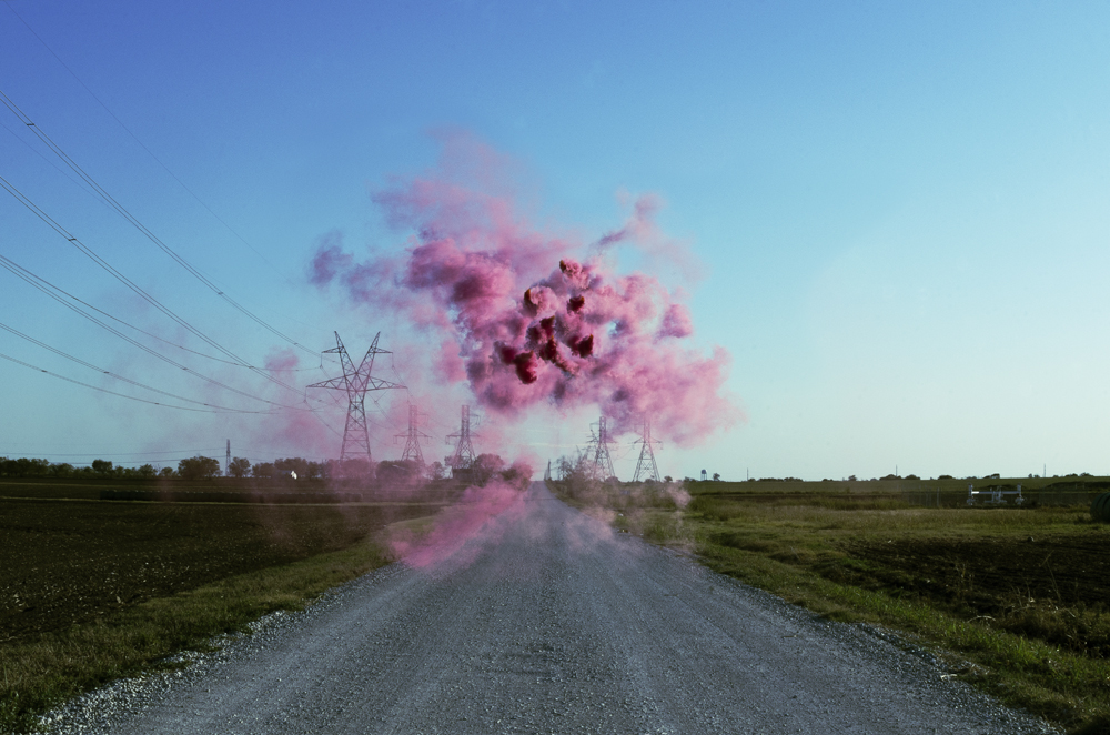 Voici comment il décrit sa série : « Les phénomènes flottants dans mes photographies comblent le vide des paysages urbains et naturels. J’altère l’espace physique avec de vrais nuages de fumée et je laisse la nature dicter leurs formes et leur longévité. Durant un instant, cela me permet de capturer l’espace vacant ».