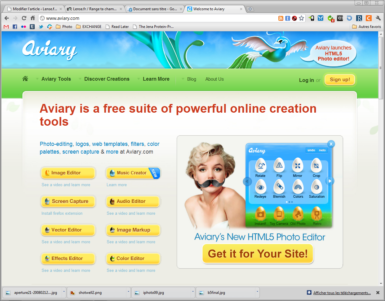 On pense souvent Internet comme une solution pour stocker et partager ses photos mais rarement pour les éditer, les retouches. Il existe pourtant des sites comme Phoenix d’Aviary ou Picnik ou encore Adobe Photoshop Express qui vous proposent de modifier vos photos en les important directement de facebook, flickr ou picasa. S’ils ne gèrent pas les RAWs ou les collections, ils feront d’excellents outils de secours lorsque vous n’avez pas votre ordinateur avec vous.