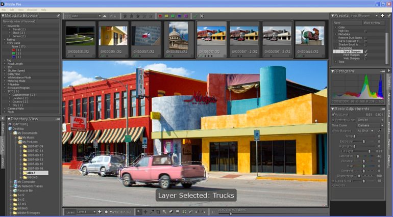 On retrouve les mêmes fonctionnalités pour l’importation que dans Lightroom. C’est dans le volet retouche que Bibble se différencie le plus d’aperture ou lightroom. Bibble propose des calques de retouches (à la manière de Photoshop), une fonction originale dans le monde des logiciels de développement photo. Les calques couplés aux sélections sont à mon sens des outils plus performants pour la retouche que les pinceaux ou les filtres. (On peut faire de la désaturation sélective super facilement).