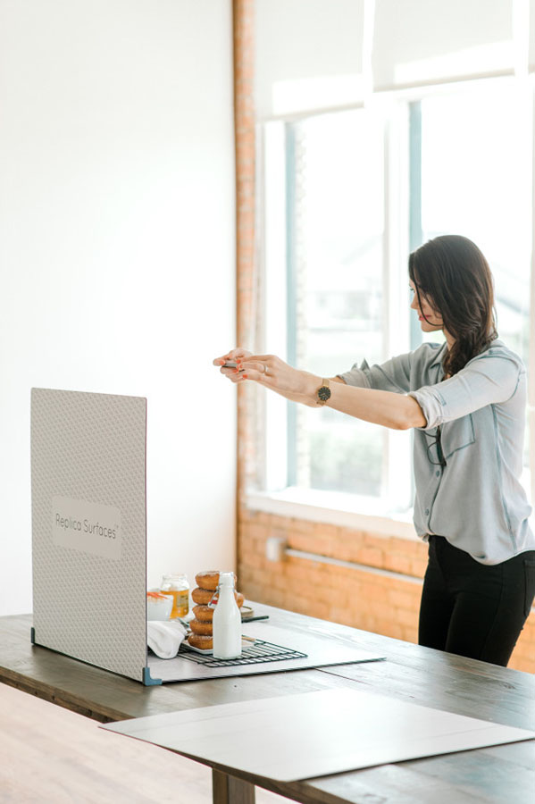 Mandy Gleason addresse les Replica Surfaces et Stands aux blogueurs, aux influenceurs et aux vendeurs d’objets en ligne. Le format et l’esthétique de ces produits les rends en effet adaptés à la photographie culinaire et au packshot. Six aspects différents sont à l’heure actuelle proposés : Ship-lap (rendu s’approchant d’un plancher clair), White Marble (marbre blanc), Rose Marble (marbre rose), Concrete (béton), Cement (ciment) et Weathered Wood (rendu s’approchant d’un bois grisâtre).