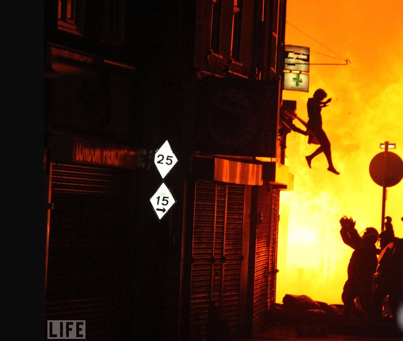 Comme chaque année, l’excellent LIFE livre son panel des photos de l’année. Parmi celles-ci : une femme saute d’un immeuble en feu, lors des émeutes londoniennes de cet été. Une image au parfum de guerre civile, et une médiatisation des évènements qui a fait débat…