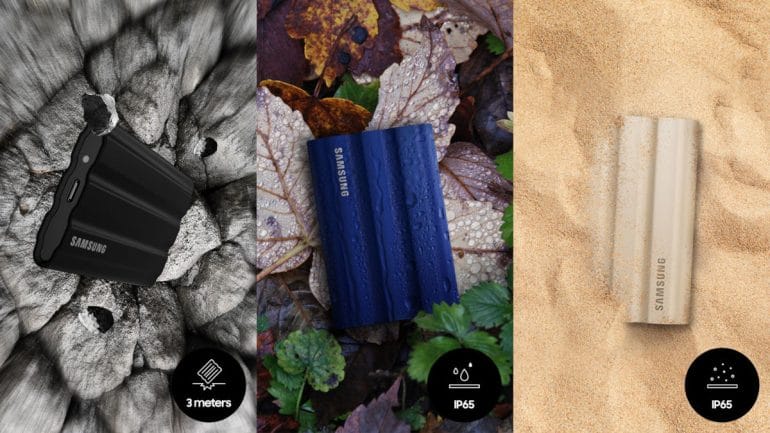 Appréciés pour leur format compact, les SSD nomades de la gamme Samsung T accueillent un nouveau représentant : le T7 Shield. Aux points forts de ses prédécesseurs, celui-ci ajoute une résistance accrue aux chocs, à l’eau et à la poussière.