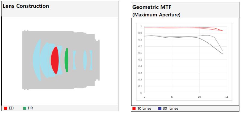 Avec sa construction optique en 5 éléments réunis en 10 groupes dont 2 lentilles asphériques, 4 lentilles à fort indice de réfraction (HR) et une lentille en verre a très faible dispersion (ED) pour réduire les aberrations chromatiques et la distorsion, ce 14 mm f/2,8 promet un fort pouvoir résolvant. En outre sa mise au point minimale réduite à 20 cm et son diaphragme à 7 lamelles lui offriront un flou d’arrière plan sans doute intéressant.