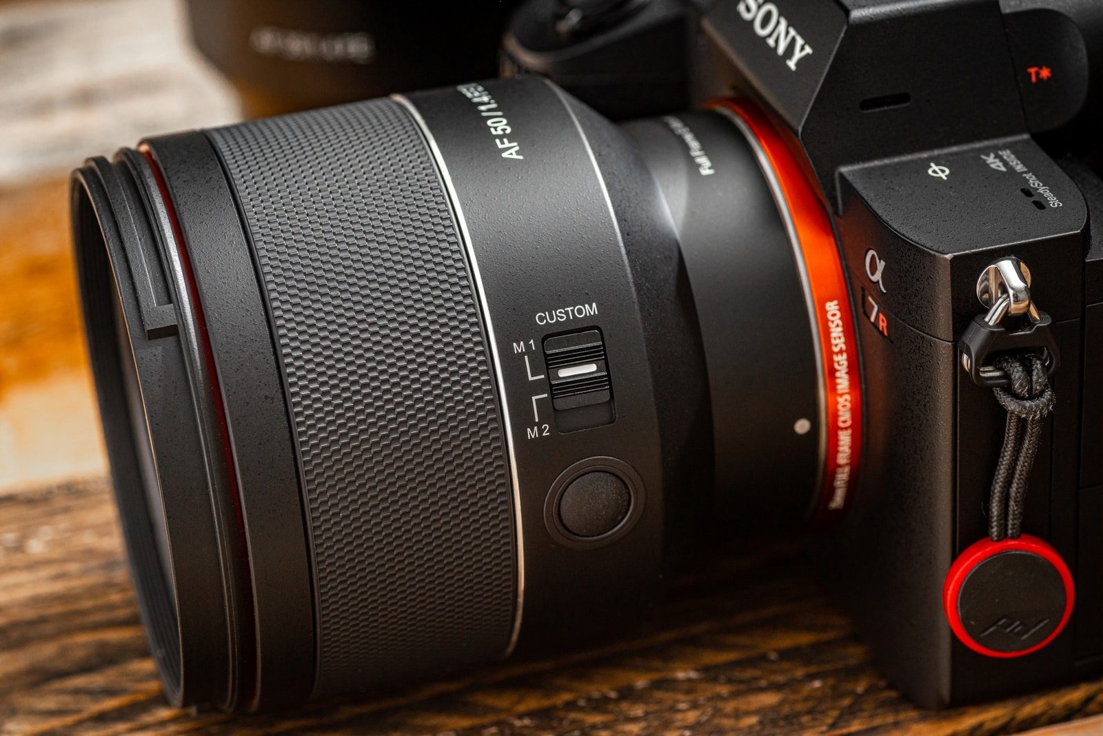La Samyang AF 50 mm f/1,4 FE II avec ses 8,89 cm de long, 8,01 cm de diamètre, et 492 g revendique même le titre de focal fixe 50 mm à grande ouverture la plus compacte et légère du marché.