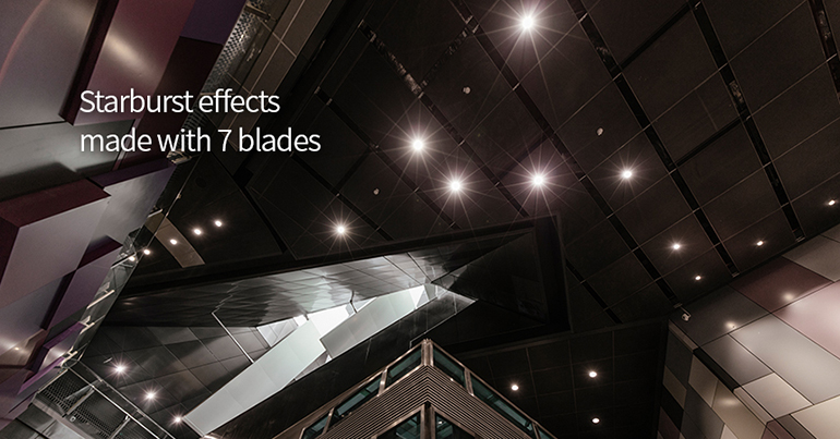 Le 14 mm f/2,8 de Samyang est constitué de quinze lentilles organisées en dix groupes. Sept verres particuliers ont été intégrés à cette formule pour obtenir une qualité d’image optimale : 2 verres asphériques, 4 verres à haute réfraction, et 1 verre à ultra-faible dispersion. Son diaphragme à sept lamelles permet un effet “Starbust” toujours appréciable.