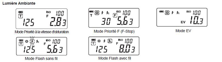La mesure de l’exposition au flash peut être quant à elle être réalisée en mode avec ou sans fil.