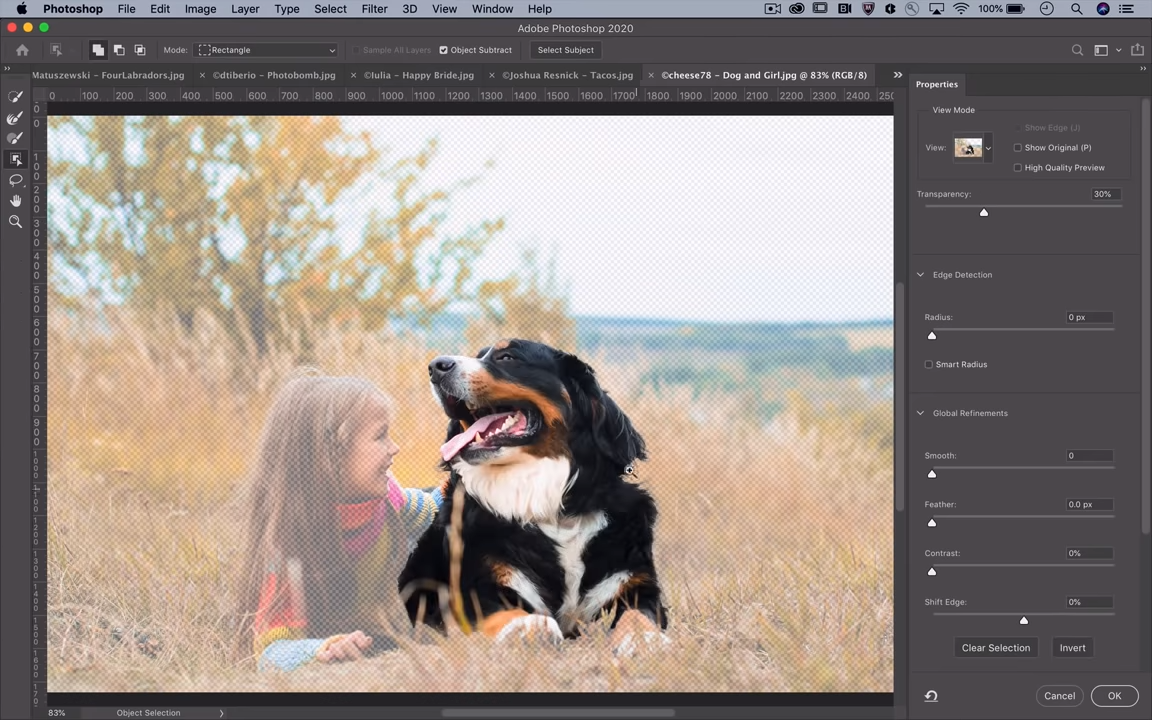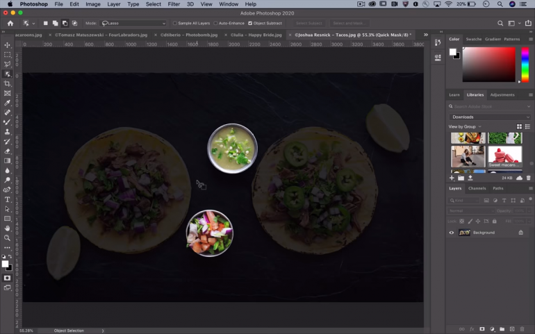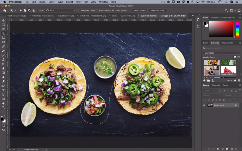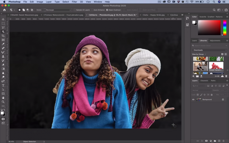 Adobe a toujours été à la pointe lorsqu’il s’agit de proposer des outils de sélection automatisés. Qu’il s’agisse de l’outil de sélection rapide ou de l’outil baguette magique, les outils de sélection Adobe ont continuellement progressé. Récemment, en 2017, l’outil sélection de sujet a aussi fait son apparition.